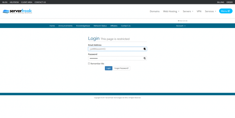 - Once activated, visit hosting provider and login to gain access to backend. For Serverfreak can login here.